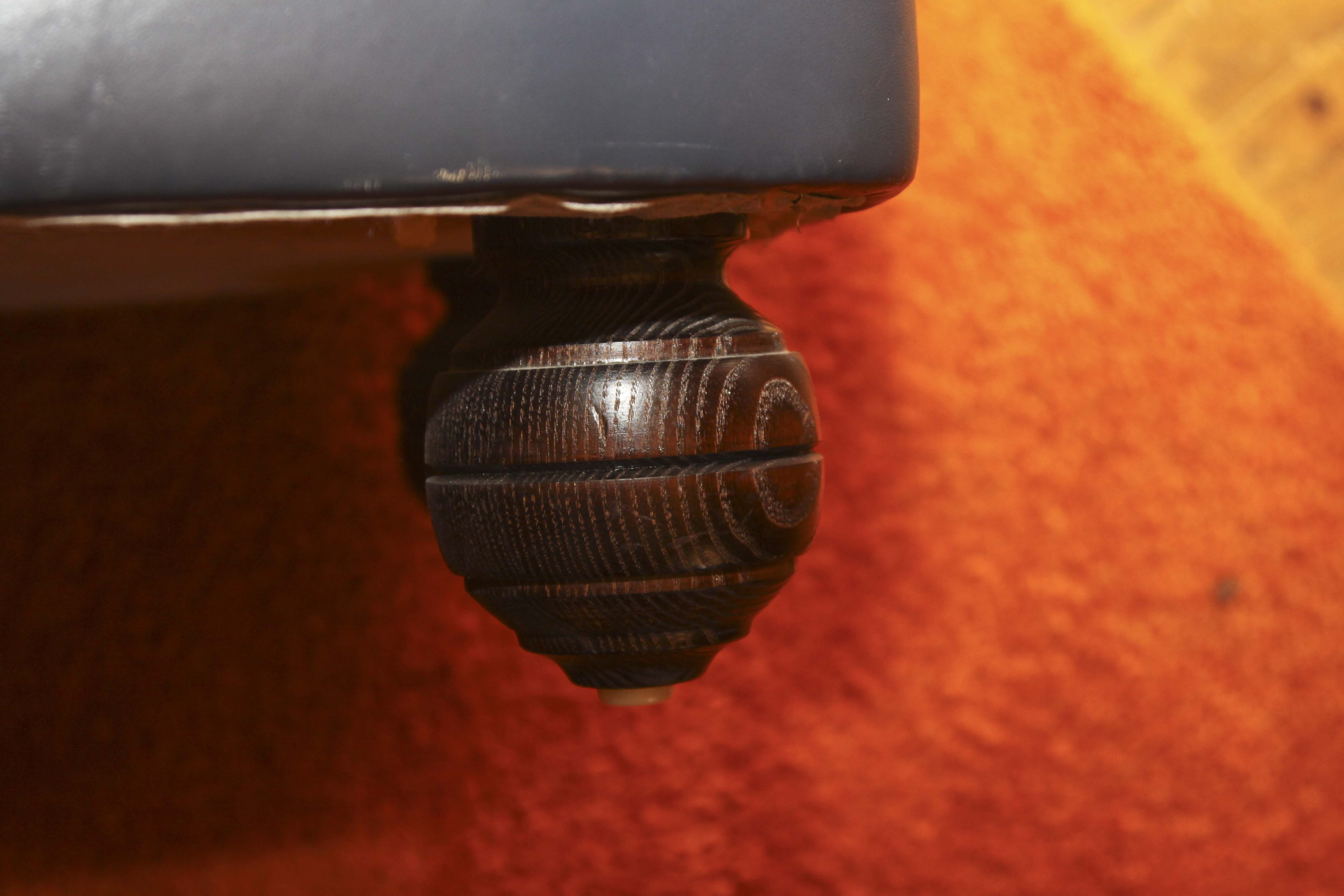 Navy Blue Chair With Ottoman / Navy Blue Armchair With Ottoman - Lesgazouillis / The chair features squared arms that curve down towards the lace tufted back and cushion.